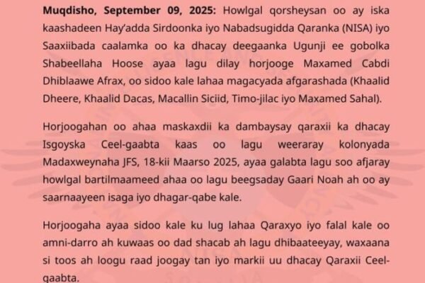 Hay’adda socdaalka iyo Jinsiyadda ee Jamhuuriyadda Federaalka Soomaaliya ayaa si rasmi ah u soo bandhigtay warbixin sanadeedka Waxqabadka ee Sannadka 2025, iyadoo hal-ku-dheggu yahay (Secure Borders, Safe Somalia) sugidda amniga xuduudaha iyo Ilaalinta dadkeenna. Warbixintan ayaa muujinaysa horumar ballaaran oo Hay’addu ka gaartay sugidda amniga xuduudaha dalka, casriyeynta adeegyada socdaalka, iyo hirgelinta isbeddel dhijitaal ah…