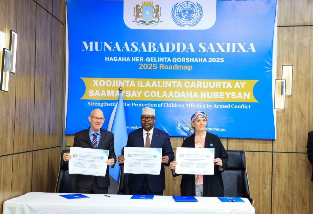 Muqdisho: Dowladda Federaalka Soomaaliya iyo Qaramada Midoobay ayaa maanta si rasmi ah u kala saxiixday Hagaha Hirgelinta Road Map ka ee 2025, kaas oo lagu xoojinayo ilaalinta carruurta ay saameeyeen colaadaha hubeysan. Hagahan ayaa waxaa wada saxiixay Wasiirka Gaashaandhigga Jamhuuriyadda Federaalka Soomaaliya, Mudane Axmed Macallin Fiqi, Ergayga Gaarka ah ee Xoghayaha Guud ee Qaramada Midoobay…