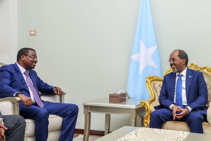 Madaxweynaha Soomaaliya oo Madaxtooyada ku Qaabilay Guddoomiyaha Xiriirka Kubadda Cagta Jabuuti