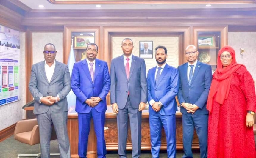 Muqdisho – Ra’iisul Wasaaraha Xukuumadda Federaalka Soomaaliya, Mudane Xamse Cabdi Barre, ayaa maanta xafiiskiisa ku qaabilay Mudane Suleyman Xasan Waaberi, oo ah xubin sare oo ka tirsan Golaha FIFA isla markaana ah Guddoomiyaha Xiriirka Kubadda Cagta ee dalka Jabuuti.