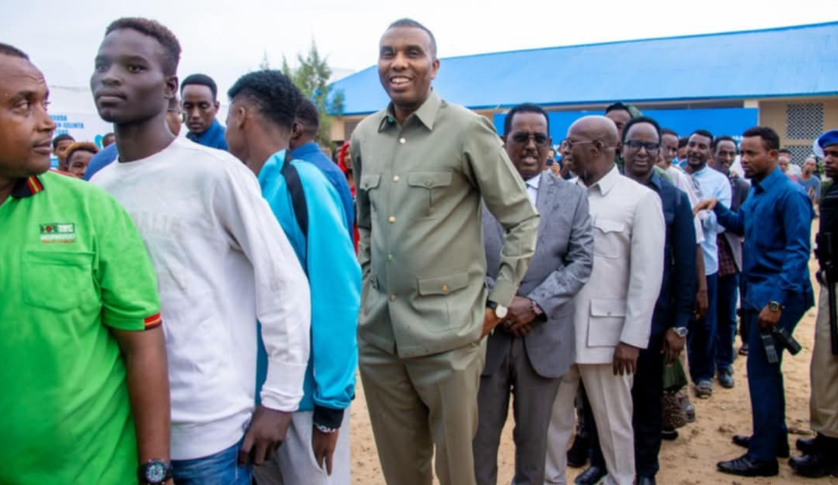 Ra’iisul Wasaaraha oo ay wehliyaan Wasiirka arrimaha gudaha XFS, Cali Yuusuf Cali (Xoosh), Duqa muqdisho iyo ma’uuliyiin kale ayaa ku biiray muwaaddiniinta halkaasi iska diiwaan-gelinaysa.