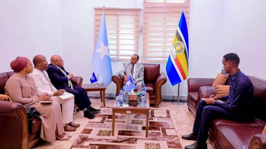 Ali Mohamed Omar alias Ali Bal’ad, Somalia’s federal government foreign affairs and international cooperation state minister held meeting with Ambassador Mohamed El-Amine Souef, Special Representative of the Chairperson of the African Union Commission (SRCC) for Somalia and Head of AUSSOM, at the Ministry’s headquarters.