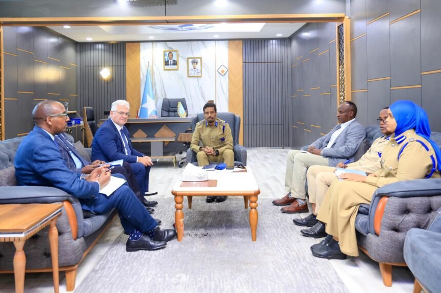 Muqdisho – Taliyaha Ciidanka Booliiska Soomaaliyeed, Sarreeye Guuto Asad Cismaan Cabdullaahi, ayaa maanta xafiiskiisa ku qaabilay Madaxa Hay’adda Horumarinta Qaramada Midoobay (UNDP) ee Soomaaliya, Mr. Lionel Laurens, iyo masuuliyiin sare oo ka tirsan xafiiskiisa.